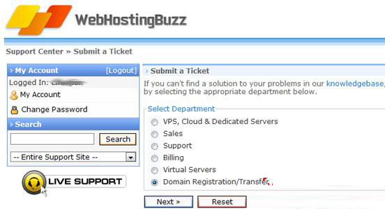 如果我们在购买WebHostingBuzz主机的时候是用自己已有的域名购买到主机,然后我们在主机开通后可以通过后台发送Ticket留言告诉你需要注册的域名。